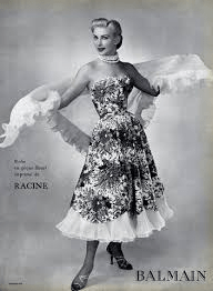 [1]Pierre Balmain was born in 1914 at Saint-Jean de Maurienne in France. His father was in the drapery business and his mother ran a fashion boutique with her sisters with the name, Galeries Parisiennes. He started early by studying architecture at the Ecole des Beaux-Arts while also doing drawings for the designer, Robert Piguet. He ceased his studies in 1934 after the offer and acceptance of a job by Edward Molyneux. During World War II Balmain joined Lucien Lelong where he met Christian Dior who was a great influence on Balmain’s designs.