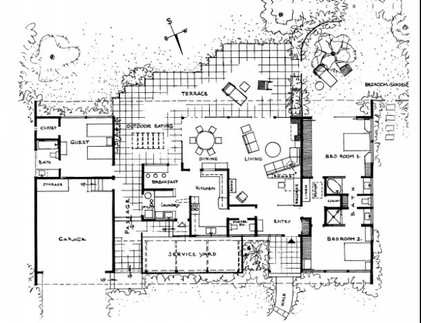 Case Study House #1 by J. R. Davidson, 1948 (Drawing from Arts and Architecture)