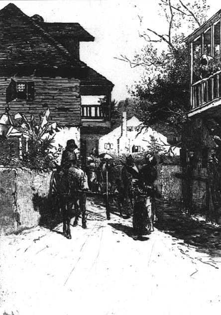 Market Day, St. Augustine, Etching, Stephen Parrish 1884.
