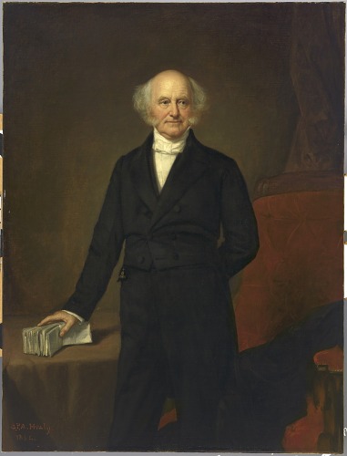 Speaking of Martin Van Buren, in another portrait at the White House, hangs one of the president in a pose resembling a famous picture of George Washington by Gilbert Stuart (1755 – 1828).