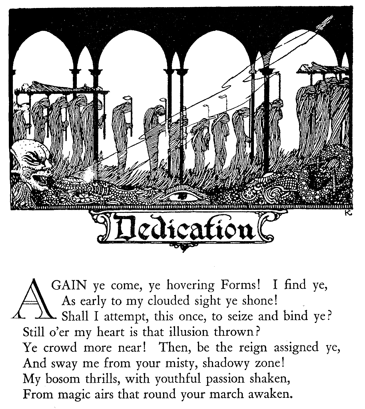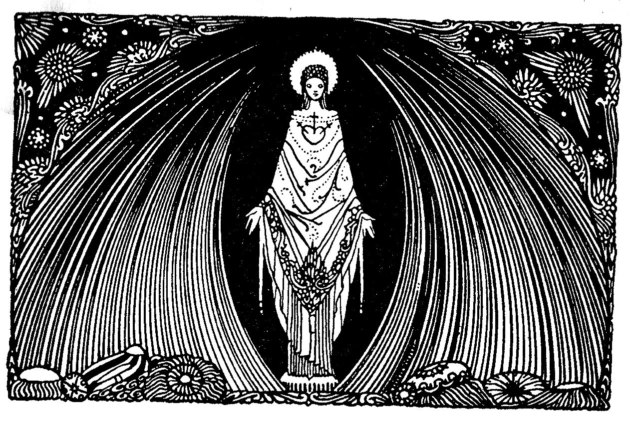 Also, I will narrow down his works to one book – (Harry Clarke worked in different mediums, which included stained glass.) – his fantastic illustrations for Goethe’s Faust. The main reason for this parsing of Harry Clarke’s work is justified with the knowledge that I possess an original copy of this incredible book. Oblivious to the fact that this work may be valuable, I have come to the notion that I might document the amazing works it contains. Since the illustrations all come from one book, the captions are missing to save from having to type the same information ad nauseum.