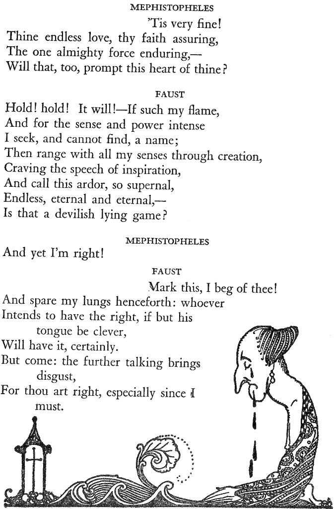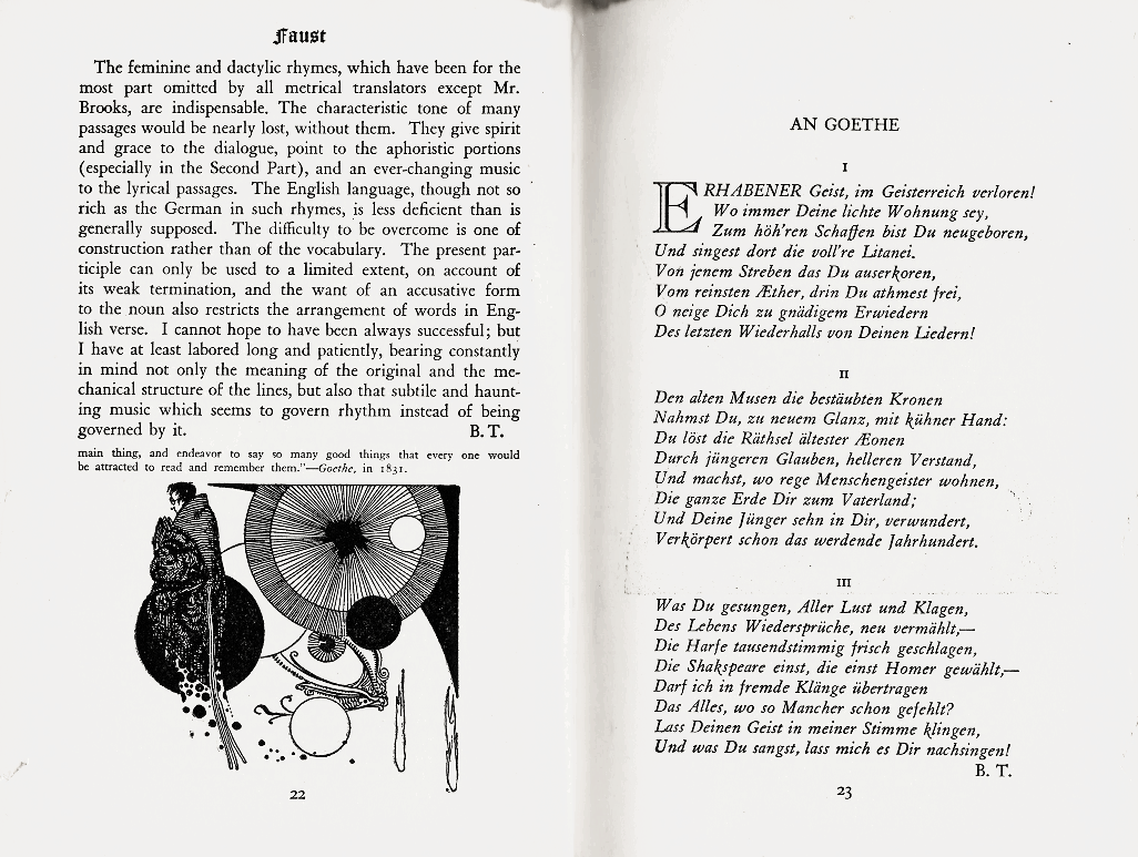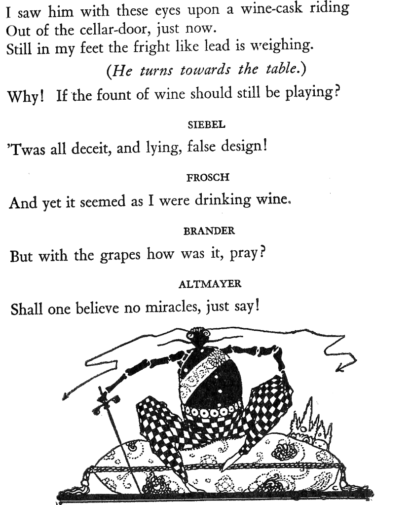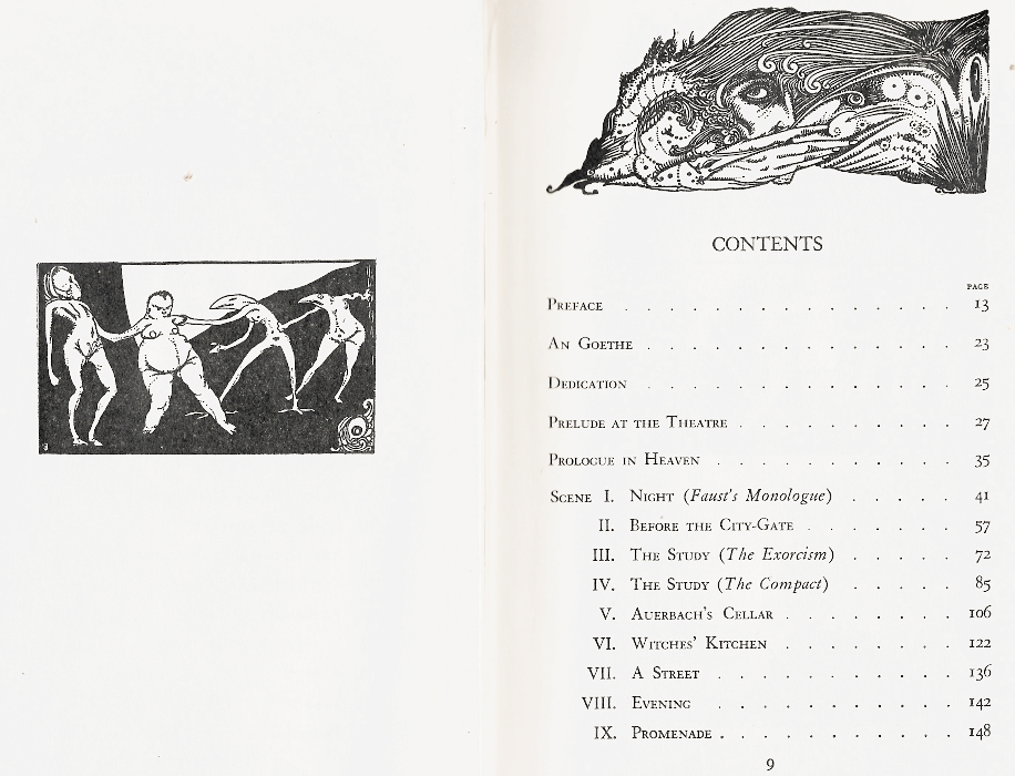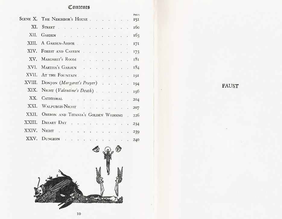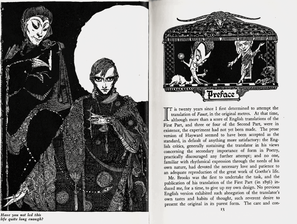 With extreme frustration, I must confess that not one date exists in this book of Faust to inform us as to when it was published. I have seen other issues but not from the same publisher. If I weren’t so indolent, I would dig deeper as I would have in my college years. Alas, I can live quite happily not knowing the publication date, presently.