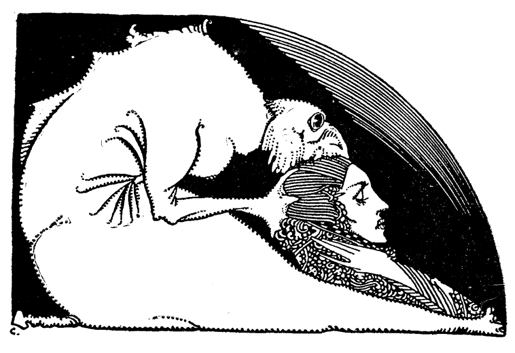 Aubrey Beardsley was one of those unique illustrators during the time of what we call Art Nouveau, that sought out a strange world so different than the reality of the period. His images, highly suggestive and erotic, were full of all the curves and exaggerations that this movement promoted and saw as modern. In fact, he and others with the same vision were said to use the Modern Style. It always struck me that a better name should have been devised for this bizarre view of a fantastic, dream like world created by the likes of Aubrey Beardsley and others. In fact, the appellation of surrealism might be in order. Say, the pre-surrealists!